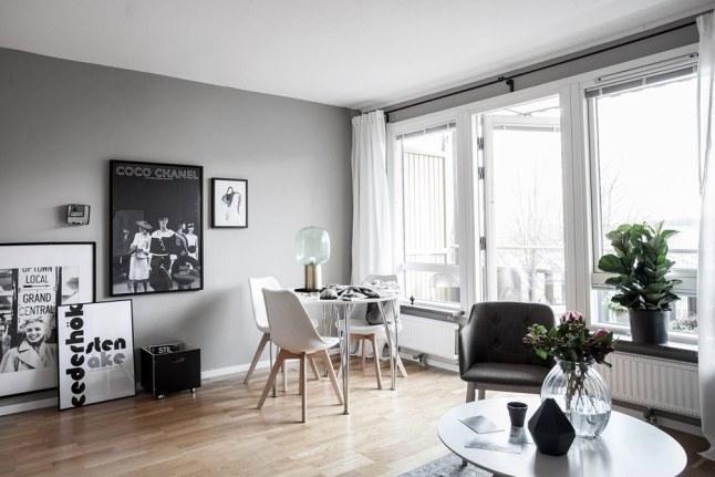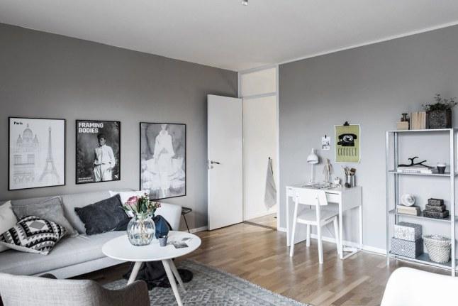 ¿Qué os parece? Muebles de diseño, paredes en gris y blanco, estilo nórdico… Parece que el espacio no es un problema. Además la decoración nórdica nos ayuda a la hora de decorar apartamentos pequeños por sus características. Los muebles simples y ligeros visualmente, el color blanco predominante… son elementos que nos dan sensación de espacio amplio.