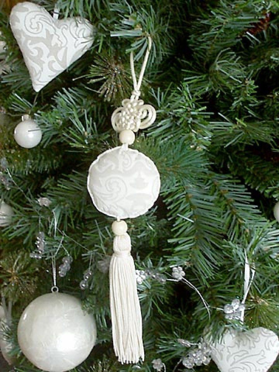 El blanco en decoración responde a una máxima: es imposible equivocarse con él. Este árbol se apoya en el particular centelleo del nácar a través de complementos con formas sugerentes que mezclan lo tradicional con lo novedoso. Un arreglo muy importante con el que tendrás que contar es una tela o algún tipo de papel que sirva para forrar la maceta. En este caso, se ha recurrido a un cojín y una bola de flores secas para mejorar la presentación.