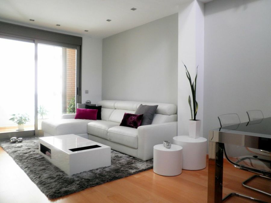 Comenzamos con la entrada del ático minimalista. Nada más llegar la luz se hace presente, puesto que desde el recibidor podemos ver el salón y un enorme ventanal. Para este espacio se eligió un mueble oscuro de líneas rectas, que puede tener un cierto toque exótico que se potencia con la figura del Buda. En la pared de frente un espejo para potenciar la sensación de espacio.