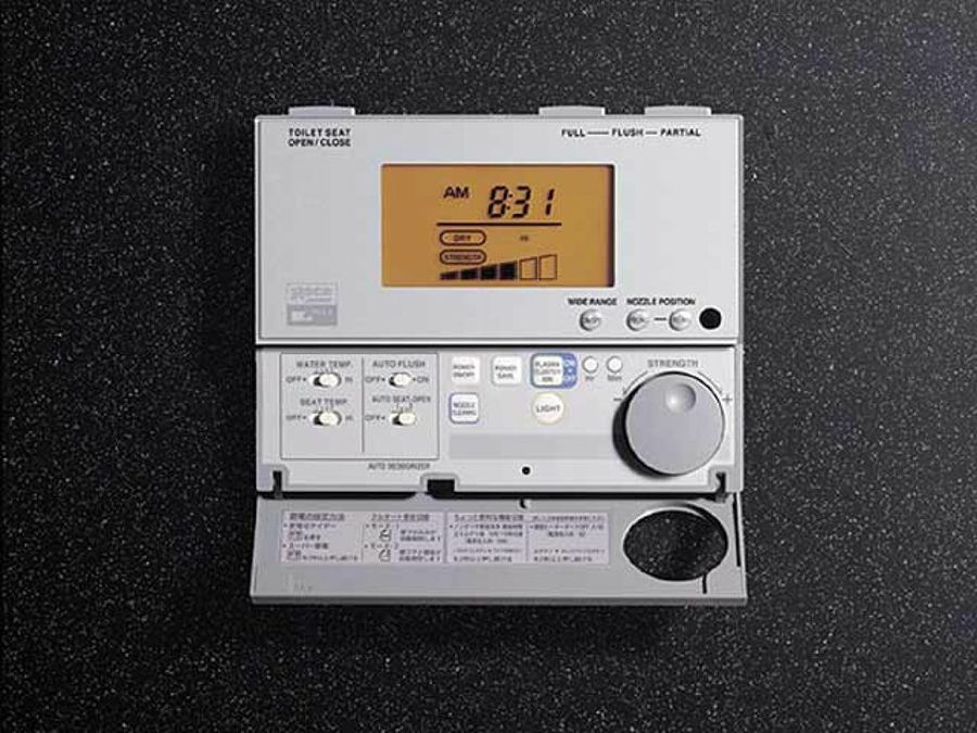 Incorpora un mando a distancia con el que levantar y bajar el asiento del inodoro o la tapa. Sus botones activan las opciones de descargar la cisterna, regular la posición del lavado, la fuerza con la que se proyecta el chorro de agua, etc. Además resulta un inodoro ecológico por su función de ahorro de energía y descarga de agua completa o parcial, aromática o manual.
