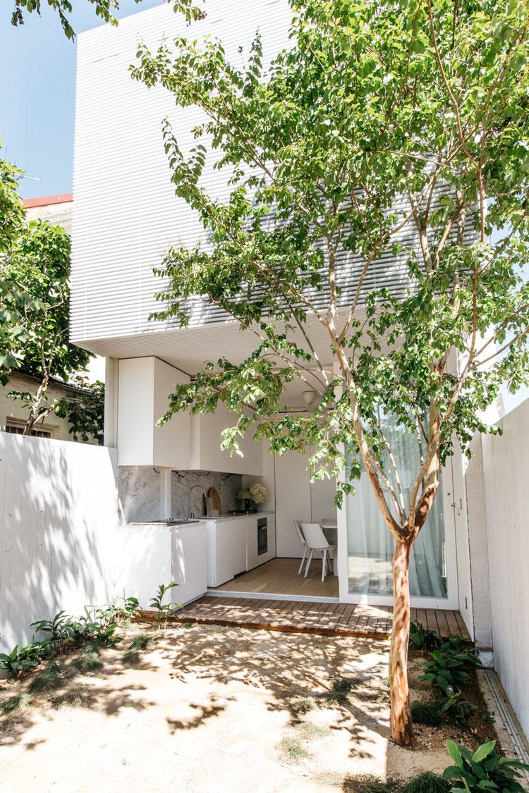 Cuando busco una casa para mostraros previamente tiene que haber algo en ella que llame mi atención, no tiene por qué atraerme la vivienda al completo (eso es casi imposible), la mayoría de las veces son pequeñas cosas las que marcan la diferencia y en este caso ha sido un árbol (qué simple soy :-)). Ese que asoma por encima de la propiedad, que está situado en pleno patio, un espacio que parece estar desprovisto de mueble alguno pero no importa, tengo imaginación suficiente como para imaginarlo cual oasis o como centro neurálgico de la casa.