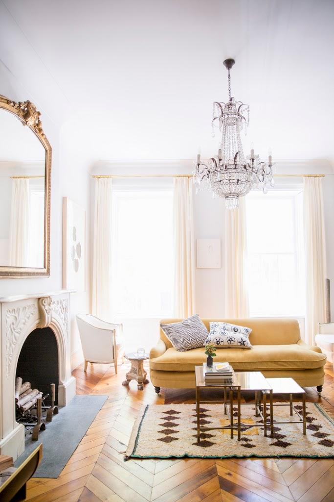 Y me sigue encantando el contraste entre piezas clásicas y de corte más moderno.La mesa auxiliar y el espejo junto con las sillas tapizadas en negro, perfectos con la chimenea.