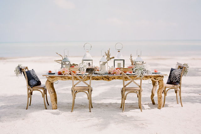 Hemos seleccionado un ambiente encantador, podría ser perfectamente el escenario de una boda, con elementos acordes a la sencillez de la playa y el mar como es el mobiliario escogido. Basta un poco de gracia y creatividad para lograr un encuentro romántico y a la vez sencillo que no olvidaréis jamás...