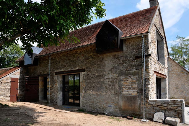 Sin palabras me ha dejado esta casa de campo en la Borgoña francesa, su fachada principal típica de la zona,no hace presagiar el interior.