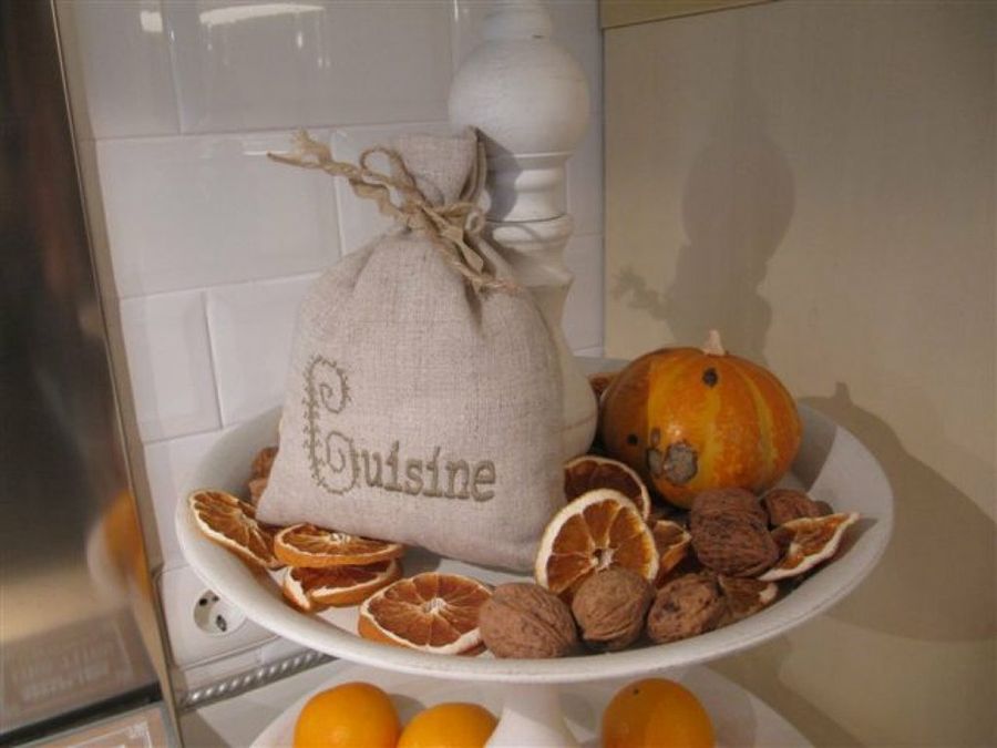 La zona de la cocina es una de las áreas mas representativas en la casa de Amggela. El papel pintado a rayas le da un toque distinguido y continua con los colores reinantes en la vivienda. Al mismo tiempo los detalles aparecen como en este frutero que también sirve como ambientador.