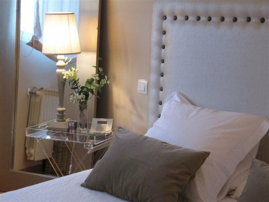 Además es una auténtica experta del tuneo, en el salón ha transformado la mesa de centro y la mesa de comedor a la que corto las patas y se llevo al porche par dar amplitud a la habitación.En el dormitorio destaca un cabecero de piel blanca con remaches que viste muchísimo. Ella misma nos comenta que todos los textiles, los papeles pintados, el color de cada pared son elegidos por ella misma. También le da un toque muy chic la butaca cerca de los armarios en blanco.