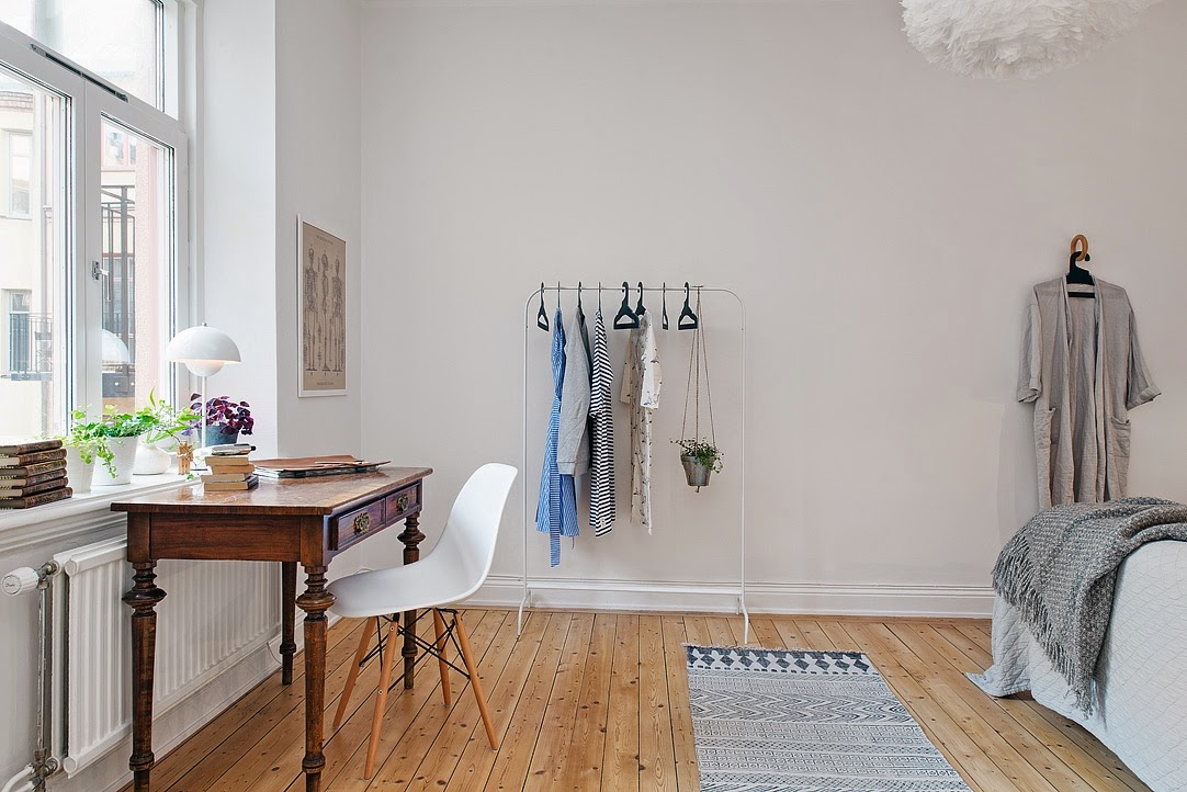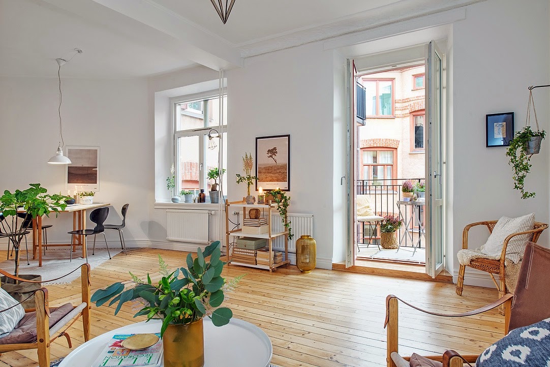 De esta casa, al más puro estilo nórdico, me quedo con la luz, no solo la natural que la invade, a través de esos grandes ventanales, también con la que le proporcionan las paredes blancas, el suelo en madera natural, el mobiliario en tonos claros, la sencillez de la decoración...