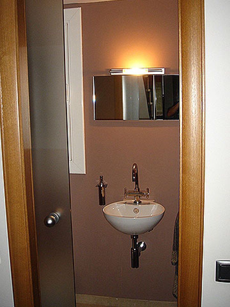 En la misma planta, Valentín ha dispuesto un pequeño aseo. La unificación de las diferentes habitaciones gracias al empleo del mismo tono de pintura para revestir las paredes es todo un acierto. El lavabo, en forma de pila ovalada, se completa con una grifería bimando y un organizador superior triple con paneles de espejo.