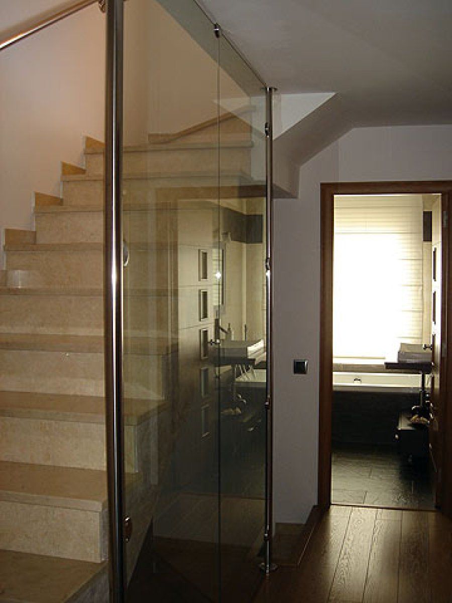 No podemos dejar en el tintero algunos elementos de la estructura de la vivienda. Tal es el caso de la escalera, realizada en mármol y acompañada de un pasamanos en inox. La colocación de una pared de cristal transparente en el lado abierto de la escalera es un elemento separador que no resta ni un ápice de amplitud.