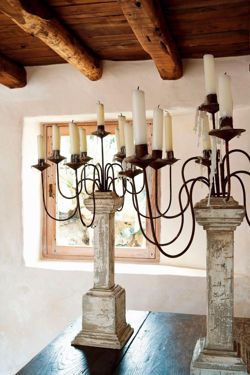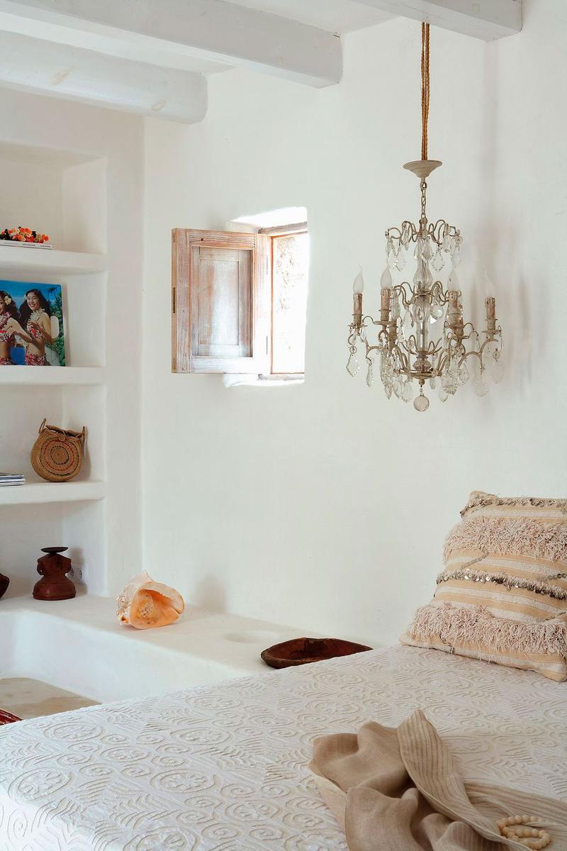 Dentro de la casa, se mezclan elementos exóticos y rústicos con otros más románticos, como las lámparas de lágrimas de cristal que cuelgan a cada lado de la cama, compradas por los propietarios en la Provenza francesa. Me recuerdan mucho a las que vende Leticia de Vintage&Chic (claro que también proceden del mismo lugar).