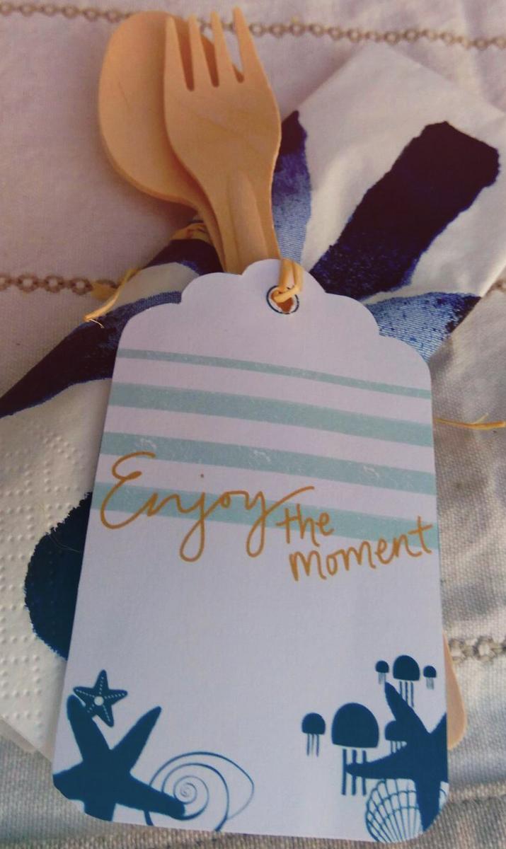 Las etiquetas que diseñamos para la ocasión, quedaron super chulas. Las diseñamos en los mismo tonos que el resto de la mesa para darle continuidad y aunque muy sencillas quedaban perfectas!!