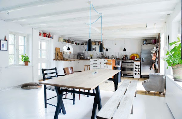 El resultado es impresionante. Interior escandinavo (suelo blanco, mucha luz, los muebles de madera clara) con una gran cantidad de muestras de colores para despertar todos los sentidos. Personalmente, me encanta la chimenea del comedor y la buhardilla.