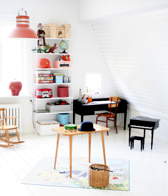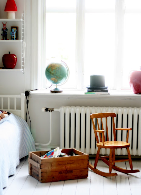 Hoy vemos esta deliciosa habitación para los mas peques , que os puedo decir.....! , que me gustan todos y cada uno de los detalles de ella , su delicadeza , sus suaves tonos , su camita de madera , su mesita de estudio y sus muñecos ...... me parece divina.