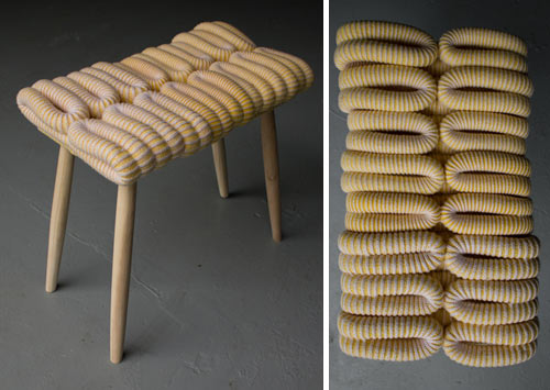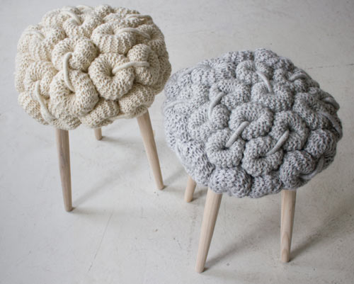 La diseñadora textil Claire-Anne O'Brien, crea estas piezas inspiradas en los gruesos tejidos de punto.