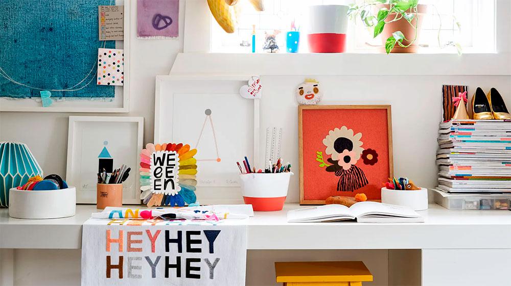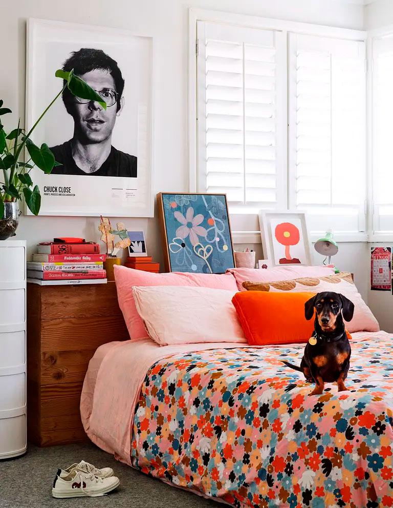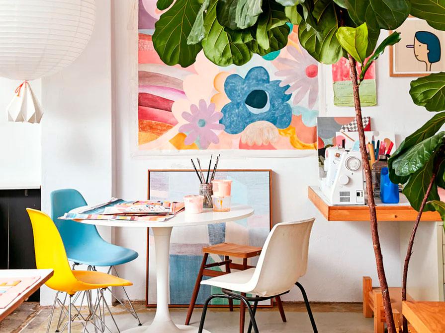 Aprovechando el cambio de estación, también quería darle un toque veraniego al blog, con una casa algo diferente a lo que suelo traer por aquí. ¿Y qué mejor ejemplo que la vivienda de una artista para poner ese toque de color? Se trata de la ilustradora Rachel Castle cuya obra desprende optimismo, tanto en sus cuadros, como en la ropa de cama, alfombras, toallas, bolsos, etc. Su marca es el paraíso para los amantes de los colores vibrantes y divertidos.