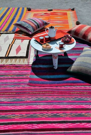 Alfombras de lana en su versión más étnica nos recuerdan a las viviendas marroquíes, todas ellas vestidas en la temporada de frío con lanas, motivos geométricos y variedad de colorido. Unos ambientes llenos de inspiración, donde elegir una sola alfombra se me hace muy difícil, y además de combinar perfectamente en estancias más modernas, podemos incorporar una mesita de madera o una bandej ...