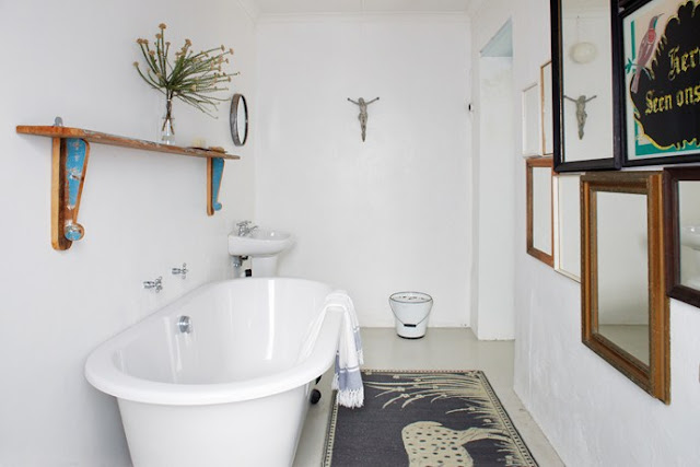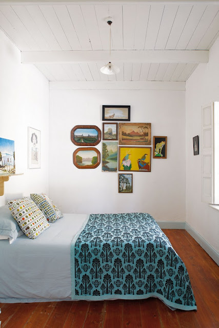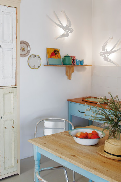Como una explosión de color se desdibuja esta vivienda, un tanto peculiar por su mezcla incesante de elementos y objetos que visten sus paredes como si de un museo de arte contemporáneo se tratara. No existen límites entre lo apto y lo no apto para el hogar, tan solo un derroche de alegría y de multiculturalismo que nos hace observarlo todo con detenimiento y una sensación de estar en mil lugares a la vez. Lo que más nos gusta, sin duda, es ese aire fresco que denota una sensibilidad especial: las sillas típicas de heladería combinadas con una mesa pintada en azul turquesa y con sobre de madera, mucho mobiliario retro y unos textiles llamativos que nos acercan a nuestra África querida.