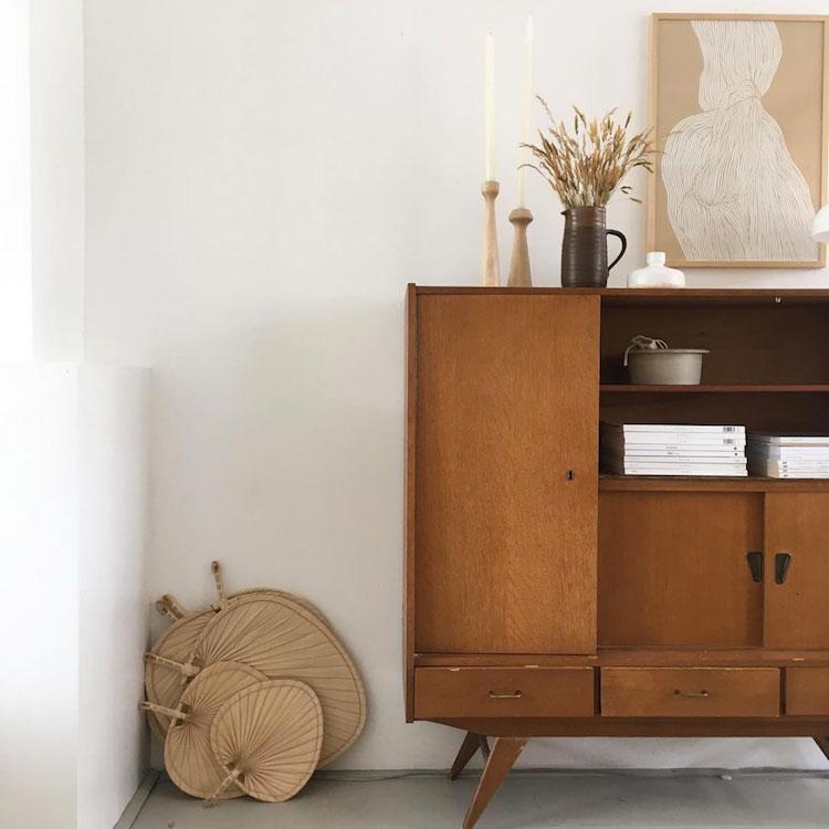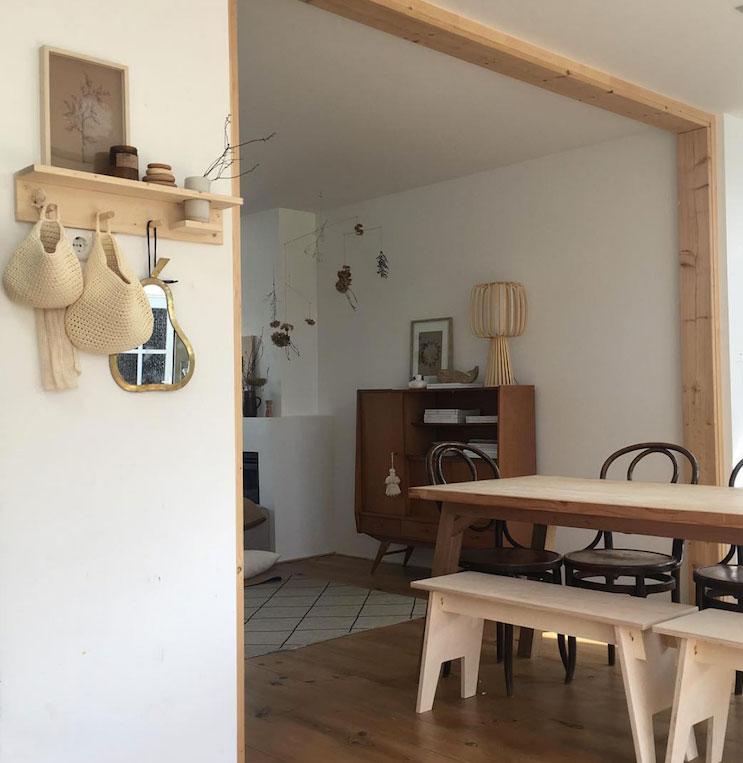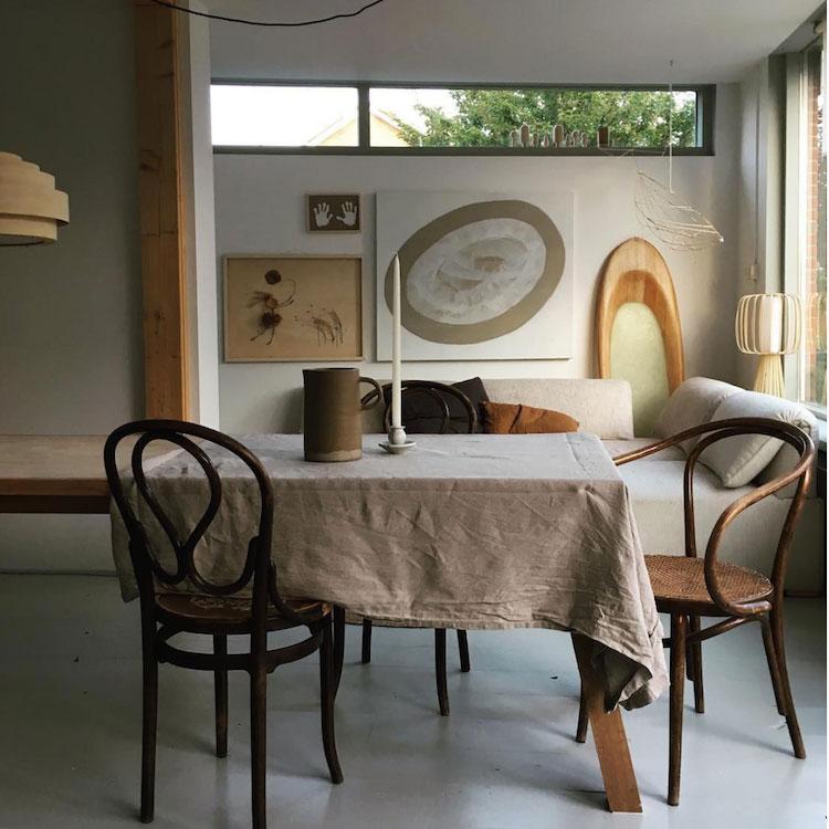 Una mezcla de estilo japonés y escandinavo se refleja en sus diseños, pero nunca falta en sus espacios el toque de una pieza antigua o vintage. Comienza siempre sobre una base blanca a la que le va añadiendo el mobiliario según las necesidades de cada casa ya que cada una demanda algo diferente, ya sea por su luz, su color,… No tiene miedo a mezclar distintos tipos de madera, algo que no todo el mundo se atreve, pero que para muchos aporta paz (me incluyo, en mi salón conviven varios tipos y no desentona ninguno).