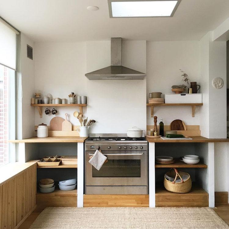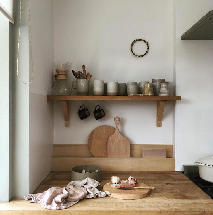 En algo coincido con Tinta, la decoración de tu casa debe hacerte sentir bien, además de ser diferente a las demás (porque todos somos distintos, así que deberíamos decorar en base a nuestros gustos y necesidades, no a las modas -esto ya lo he repetido hasta la saciedad ¿verdad?-). Rodearse de cosas bonitas que te hagan feliz debería ser una prioridad. Ella no es muy fan de almacenar porque sí, más bien piensa que es una ventaja tener sólo lo justo y necesario (¿no habéis sentido alguna vez que tenéis el síndrome de Diógenes? yo sí, cuantos más metros, más acumulo). Ella es de espacios limpios y sencillos, no acumula lo que no usa. De ahí que su cocina sea abierta, unos pocos estantes sirven para alojar lo imprescindible.