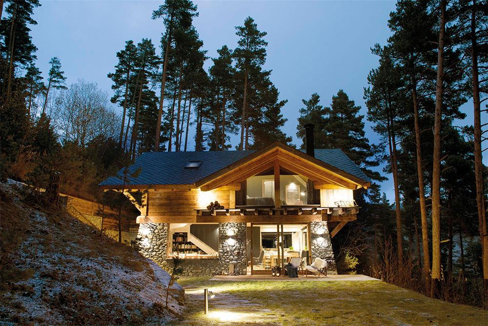 En el exterior, revestido de piedra, nos encontramos con un porche que utilizan tanto en verano como en invierno porque las vistas son inmejorables. ¿Queréis saber dónde está la casa? A tan sólo media hora de Barcelona. Lo dicho, gente con suerte…
