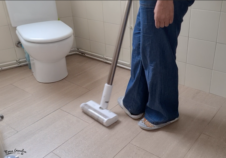 Lo primero que hacemos es aspirar o barrer, así si se moja el suelo, no quedan pegados los cabellos o basurilla que pueda haber.
