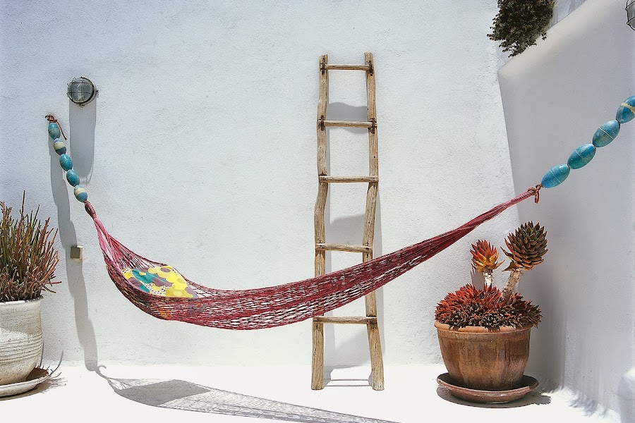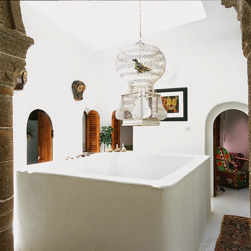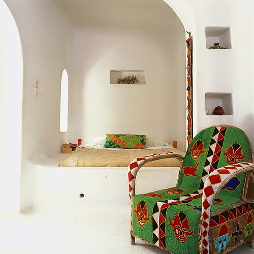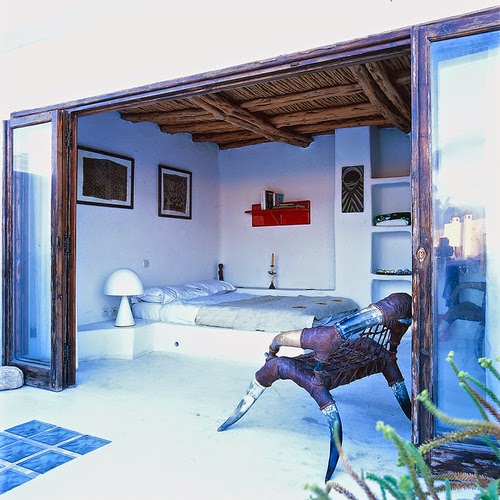 El mobiliario y la iluminación está inspirado en la época de los 60" para diferenciarla del resto de casas de vacaciones de la zona. Como es típico en lestas casas, dispone de un patio central además de cuatro habitaciones cada una decorada para sentirse como en un oasis.