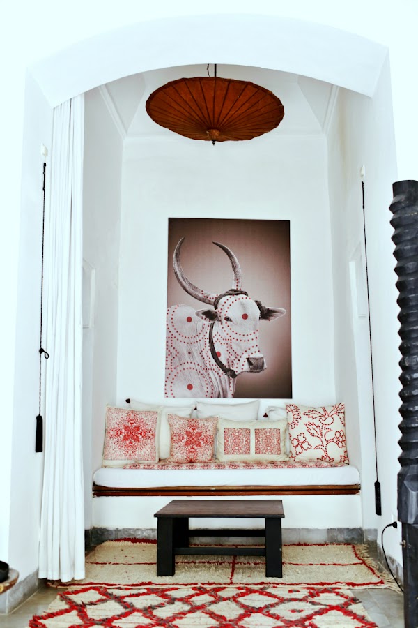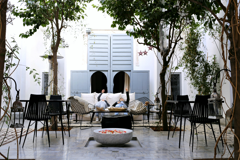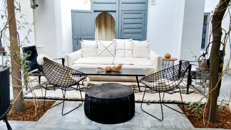 Como la mayoría de los riads, se encuentra escondido en un pequeño callejón: tras una fachada y una puerta que descolocan al llegar, nadie diría que dentro pueda existir un espacio lleno de estilo y diseño que fusiona a la perfección elementos del mundo occidental y árabe.