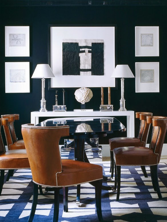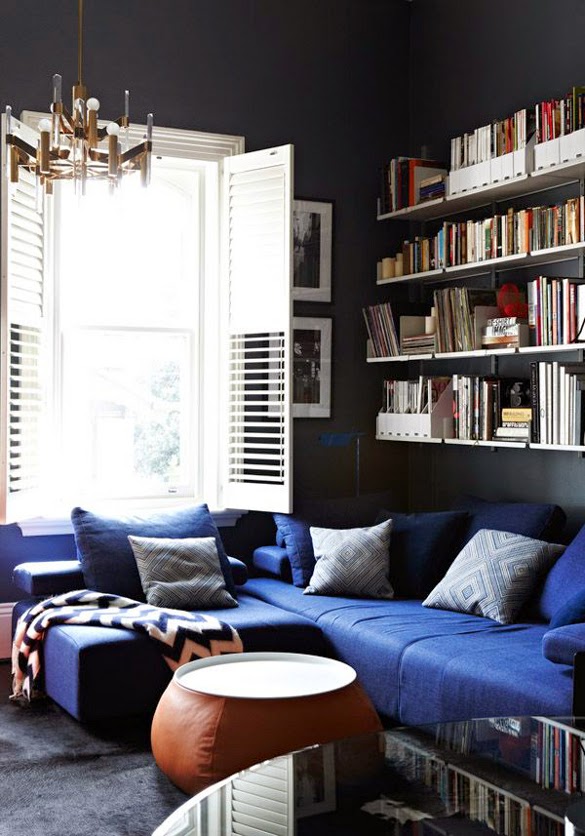 Son menos los "valientes" que se atreven a poner las paredes en un color muy oscuro, y aun menos los que se atreven con el negro, gris marengo, azul marino y verdes profundos. Obviamente no es ni para todos los gustos, ni para todos los espacios. Pero, ¿qué ocurre si tenemos una estancia con un gran ventanal que nos proporcione mucha luz natural y que nos ayude a ensalzar las ventajas estéticas que tiene pintar una o varias paredes de una estancia en un color muy oscuro? Que obtendremos resultados tan bonitos, elegantes y serenos como los que os muestro en las imágenes de este post.