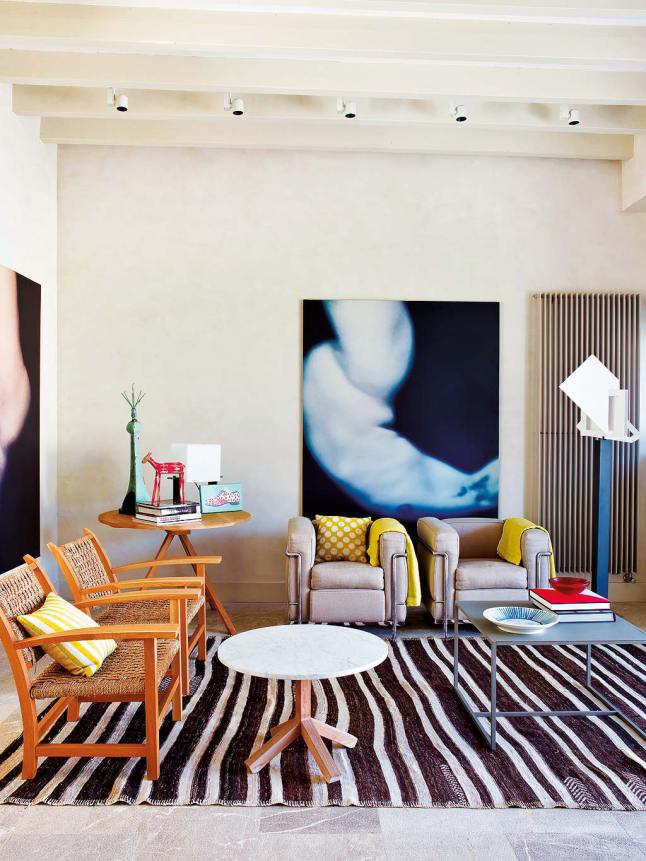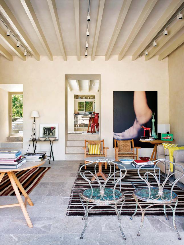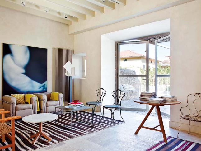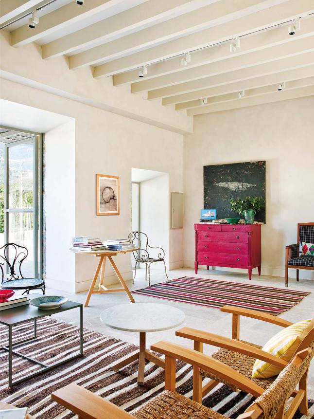 Este antiguo granero en ruinas destinado al ganado se ha recunstruido casi de la nada añadiendo algunas partes de nueva construcción Su arquitectura recrea el estilo popular de la zona, conjugando pasado y presente. Mezcla lo rústico con lo moderno y utiliza para ello en la decoración piezas vintage, obras de arte de factura actual y detalles decorativos handmade.