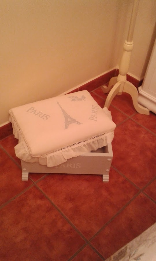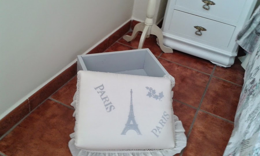 me puse manos a la obra la pinte, y hice un estarcido con la palabra París, pero seguía viendo que pedía mas