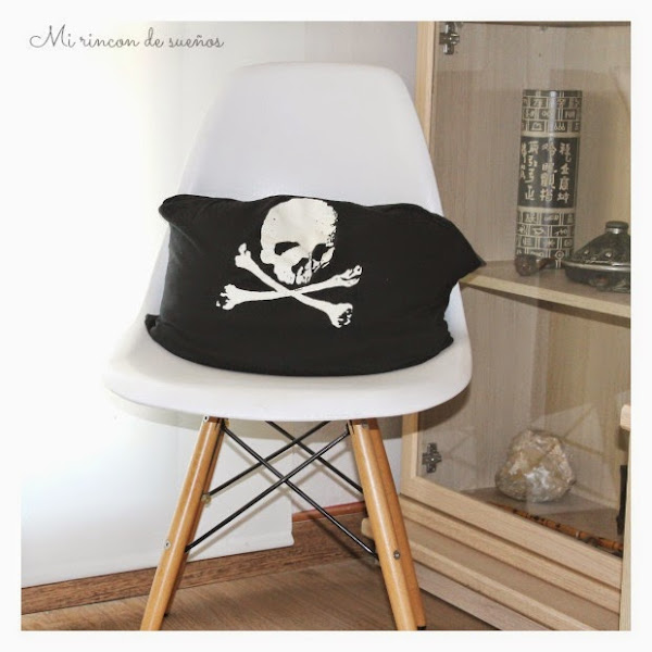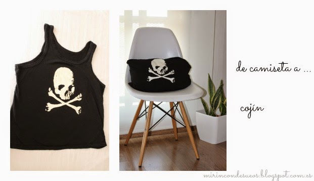 Esta idea os sirve si os gusta mucho el dibujo de una camiseta, y se os ha manchado de lejía en un lado o simplemente , queréis tener un cojín original.