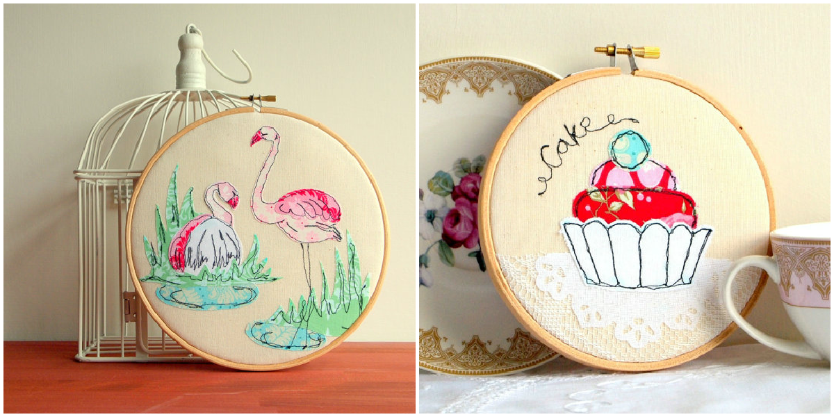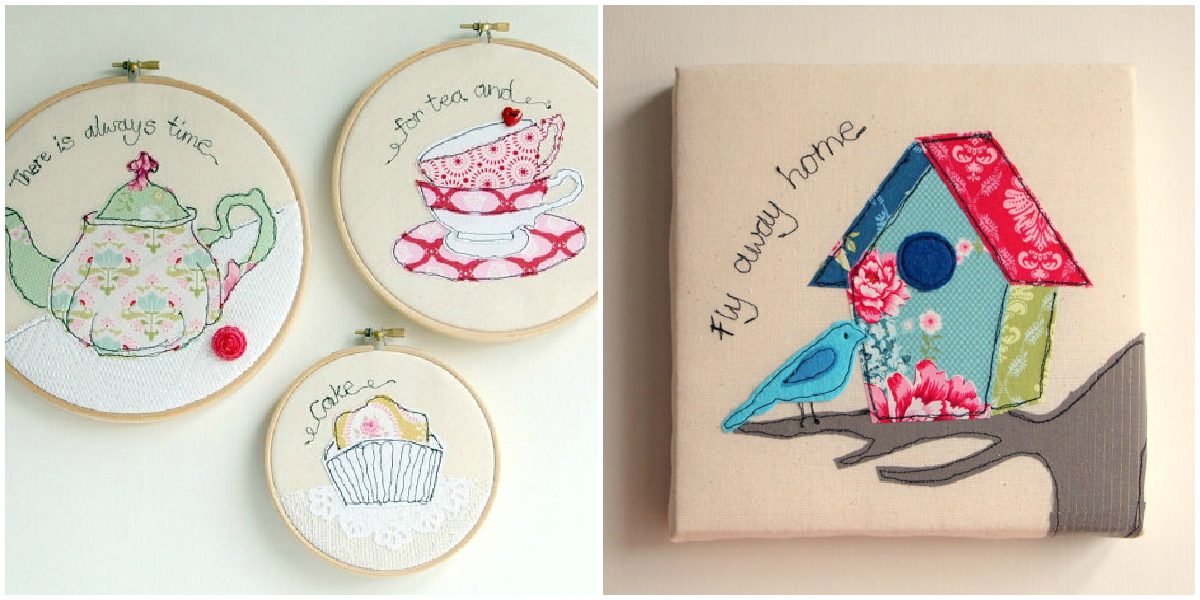 Desde Inglaterra Rachel & George realiza bonitos bastidores y cuadros, usando como material telas de diferentes colores, una bonita manera de decorar nuestras paredes.