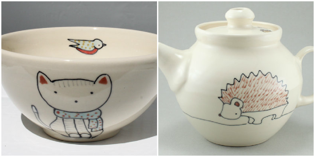 cerámica haciendo unos diseños encantadores, me gustan sus tazas y las teteras son una auténtica maravilla.