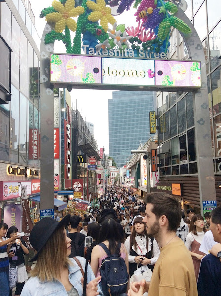 Justo a las puertas de la estación de Harajuku, se encuentra Takeshita, barrio de obligatorio paso por su fuerte influencia en la cultura pop japonesa. Su principal calle, Takeshita-dori, zona peatonal de unos 400 metros de punta a punta, repleta de tiendas y ríos de gente buscando las mejores ofertas y que al ser zona de tendencias y a pesar de ser una locura de gente que la transita, es sumamente divertida.