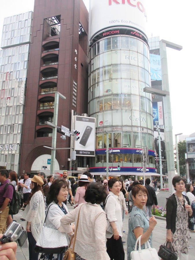 En Ginza podremos admirar los edificios descomunales y llamativos a nivel arquitectónico que recorren sus calles, el último modelo de descapotable, el famoso Kabukiza, Teatro Kabuki , entrar en las firmas de alta costura con sus elegantísimas tiendas, curiosear en la frutería más cara del mundo, sentarte en alguna de sus acogedoras y elegantes terrazas, comprar unas flores en alguna de sus encantadoras floristerías....