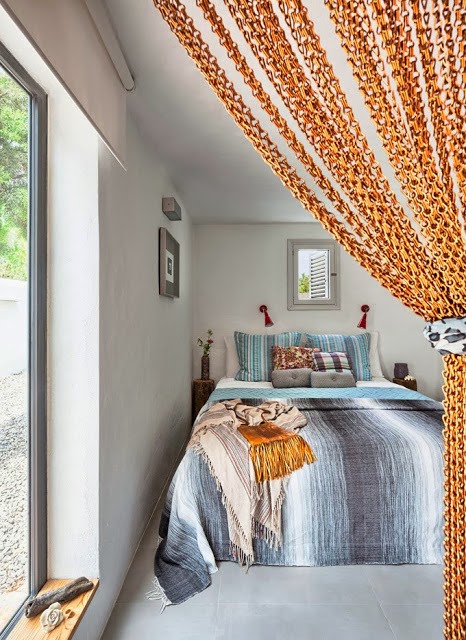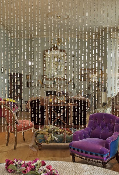 FotoNo habremos hecho nosotras pulseras, collares, anillos, llaveros... con nuestras niñas y cientos de cuentas y cadenitas de todas las formas y colores inimaginables... Hasta un puestecillo callejero montaban en el parque donde los vendían por unos pocos céntimos... Seguro que todavía quedan por casa cajitas llenas, y sería cuestión de investigar, pues, aunque fruto de la casualidad, esta idea de decorar y dividir o separar espacios nos está resultando de los más atractiva. Lejos de aquellas imágenes sesenteras de cortinas de plástico mate en las puertas de entrada de las casas, quedan las que os mostramos a continuación, que decoran con delicada belleza.