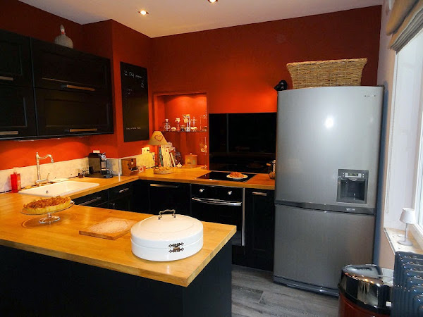 Un atrevido color frambuesa para la cocina que está amueblada con muebles de Ikea pero con las puertas cambiadas: