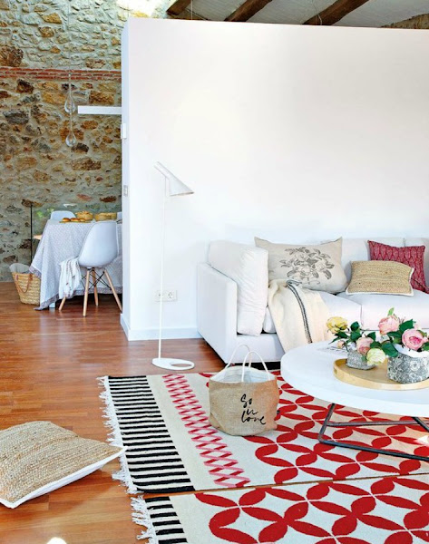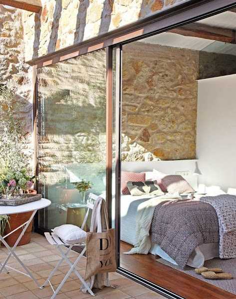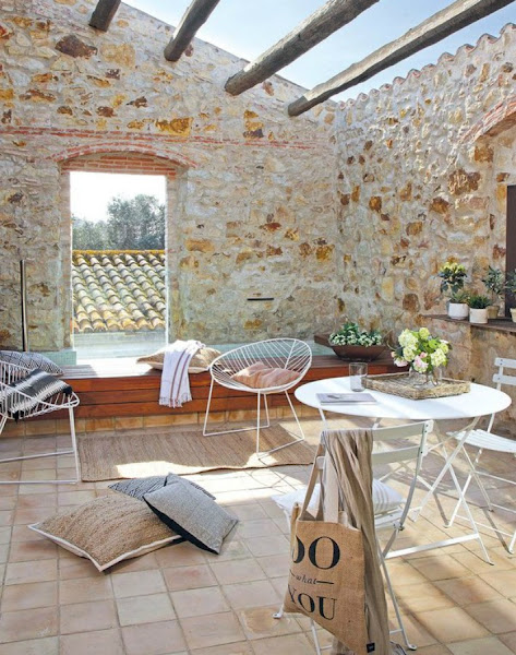 Construida en 1900 y siempre utilizada como granero o almacén se ha transformado en una vivienda con un interiorismo impecable, que conjuga los muros de piedra y las vigas originales, con diseños y materiales modernos.......¡Un placer visual para cualquier decorador!