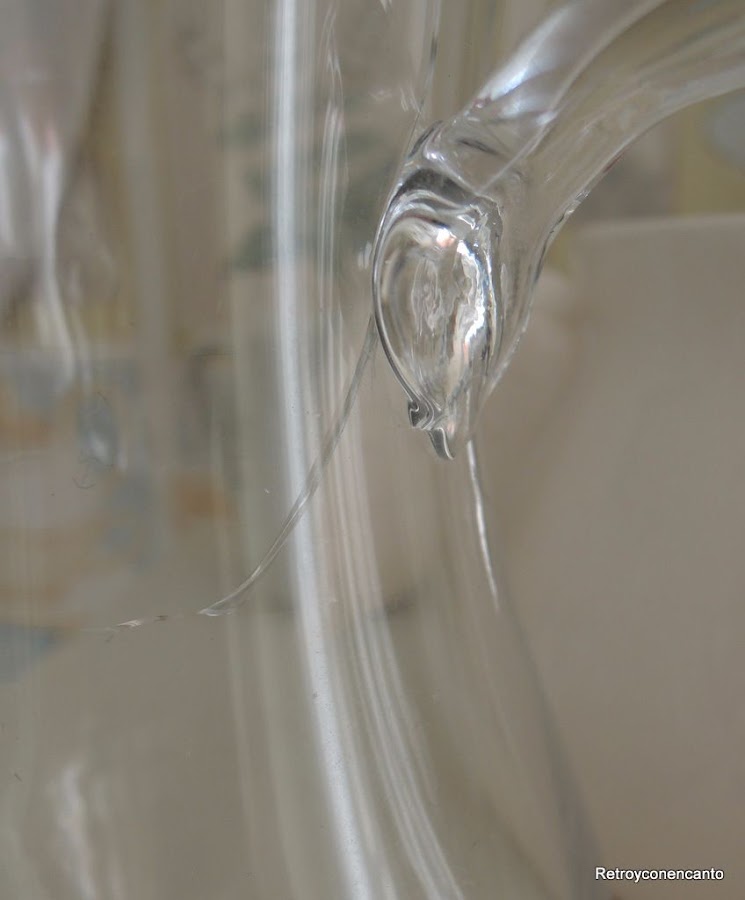 El único inconveniente de este material es que se va rajando por el mismo sitio; la zona del asa... Con lo que nuestras jarritas dejan de formar parte de la reserva activa, nos da miedo seguir usándolas, para adoptar una cómoda vida contemplativa y, temporalmente decorativa.