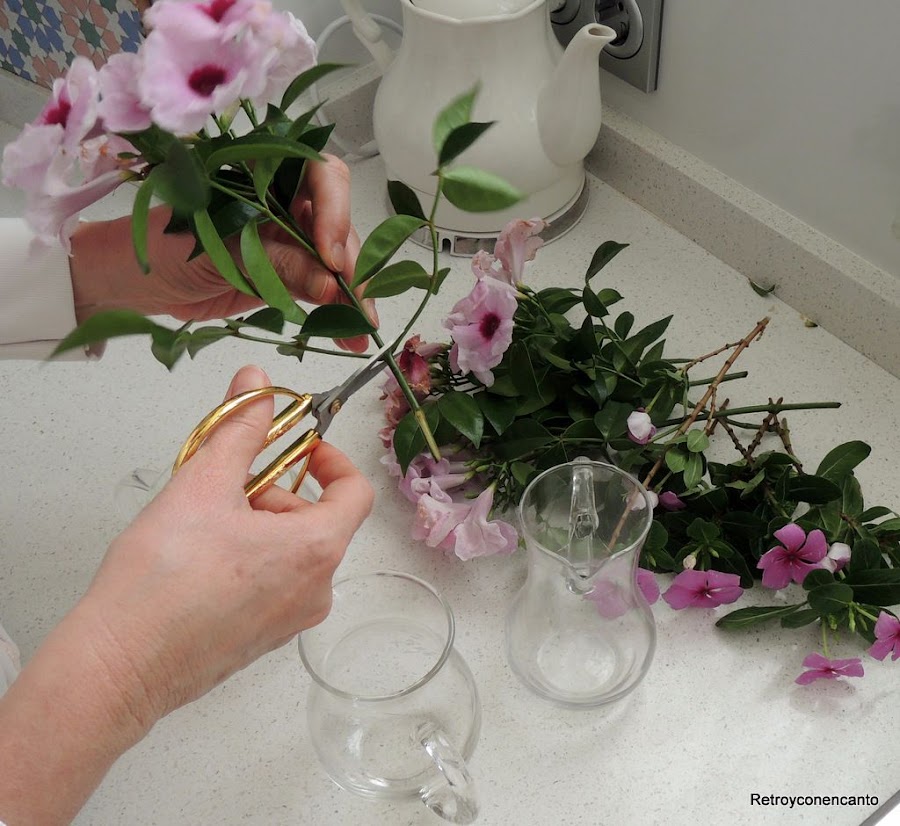 Fuera del taller hay unos setos que en primavera comienzan a dar unas flores preciosas... No son pocas las veces que nos escapamos con unas tijeras para cortar ramilletes. Además, al lado del quiosco donde compramos la prensa, hay otro seto diferente con otras flores divinas. Joaquín, el quiosquero, que ya sabe de nuestros gustos y aficiones, a veces nos sorprende con ramos de esas otras.