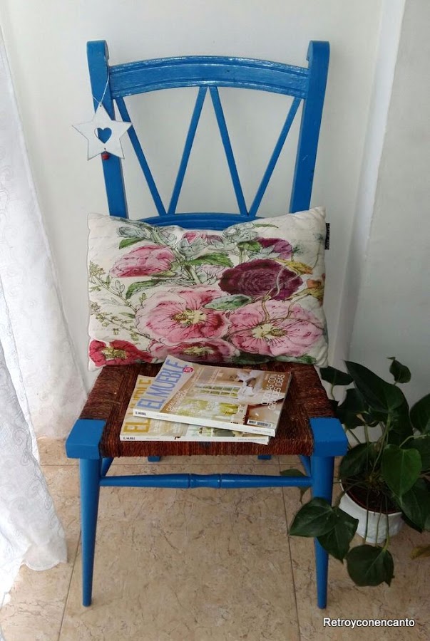 Hace poco me encontré con una silla la cual no estaba muy buenas condiciones, su respaldo y asiento de enea estaban intactos, pero sus patas delanteras estaban rotas (no desencoladas) y con difícil arreglo. Como yo suelo reutilizar todo lo que aparece en mis manos, se me ocurrió crear un perchero con la parte trasera (respaldo y patas) y guardar el asiento por si lo pudiera reciclar en otra o ...