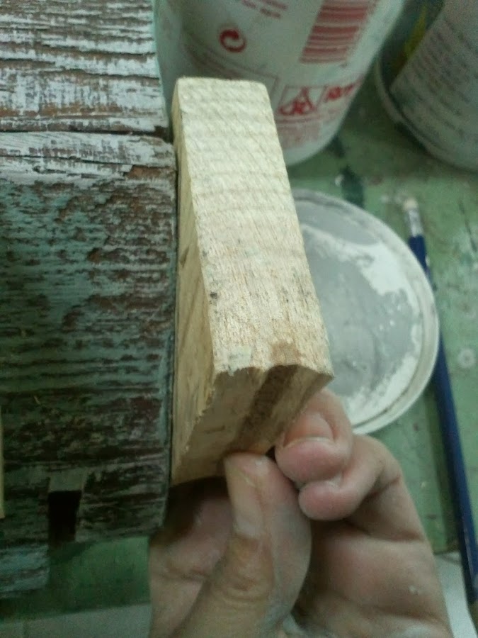 De esta forma hemos conseguido dos planos rectos a ambos extremos del gato de apriete para poder ejercer la presión que necesitamos. Cuando haya secado entonamos con un tinte "humo" el listón añadido de tal forma que apenas se nota la diferencia.