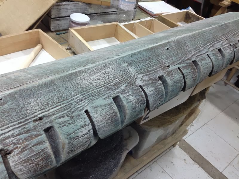 Aún menos se notará cuando hayamos hecho el barrido de color en varios tonos, en este caso Grisalla, Trento y Dante. Esta técnica es la más adecuada para esta pieza por la veta tan marcada que tiene, en la imágen se puede apreciar cómo resalta aún más la belleza de la pieza.