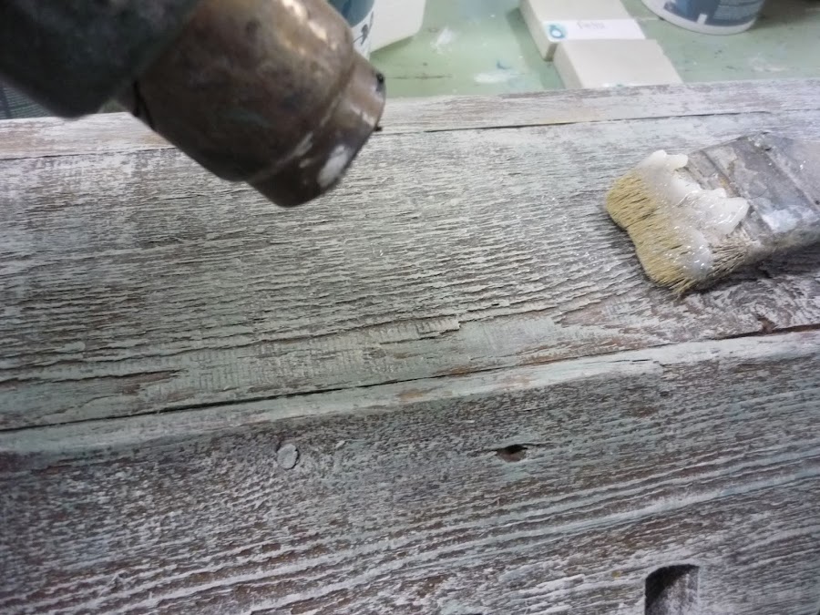 Como la madera está muy muy seca, vamos a nutrirla bien con cera, en este caso la aplicamos con pistola de aire caliente que hará penetrar aún más la cera en el poro de la madera.