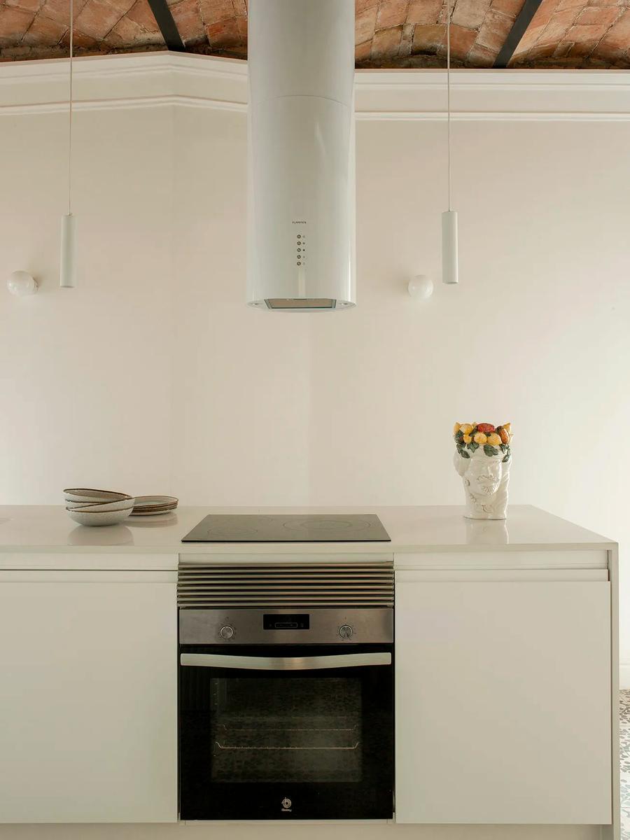 Álex no se limitó a supervisar: participó activamente en la reforma, poniendo en práctica las enseñanzas de carpintería que aprendió de su padre. Cada material, cada textura, fue escogida con mimo, priorizando lo natural y lo artesanal. La cocina, diseñada bajo el concepto de loft, cuenta con una espectacular isla de Silestone de Cosentino, lámparas de Liderlamp y un extractor a la vista que aporta un toque industrial.
