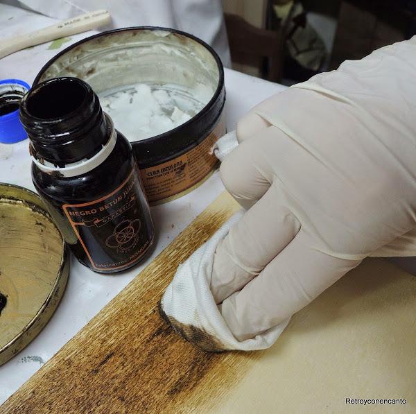 Teñimos la parte trasera de las tablitas con cera y betún de Judea (las traseras también son importantes...),
