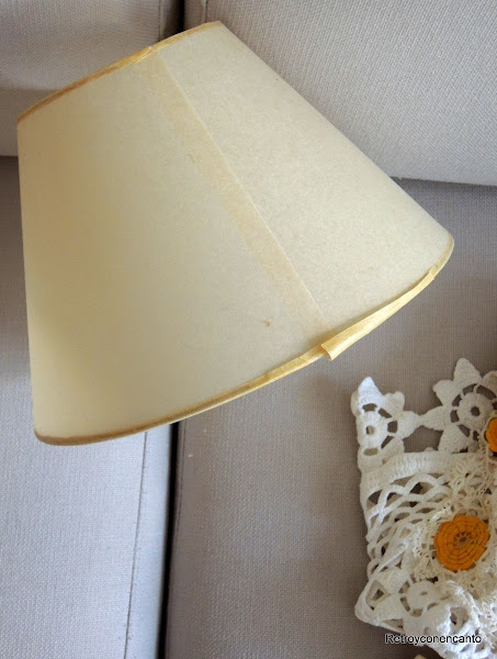 Así que, sin más dilación, pasamos a enseñaros lo que hemos preparado... Teníamos esta pantalla de pergamino en no demasiadas malas condiciones, pero nos resultaba muy sosa para cualquier pie de lámpara. A punto estuvimos de deshacernos de ella por no acumular más chismes, ya sabéis... Pero, nuestra conciencia recicladora y reparadora de objetos varios, nos lo impidió...