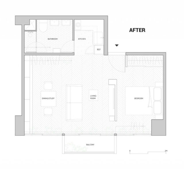 Ahora en seguida os voy a dejar el plano del antes para que os hagáis una idea. Pero, es lo de siempre un apartamento pequeño, falto de espacio, luz y sobretodo confort. En él vivía una pareja, y sus mascotas (un par de gatos, cuanto yo, quizás hay alguno más) que han agradecido enormemente el cambio. ¡Ahora en seguida veréis por qué!