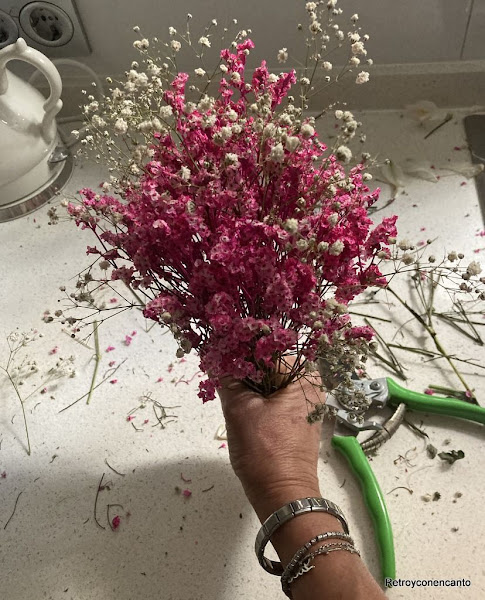 ..., igual que hicimos con estas otras, recuperadas de otro ramo, y que encajaron en nuestra vinagrera tan retro.