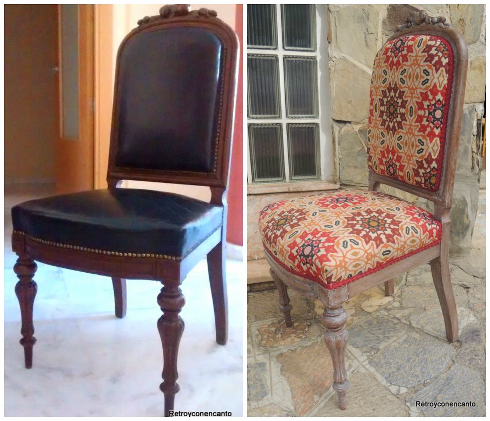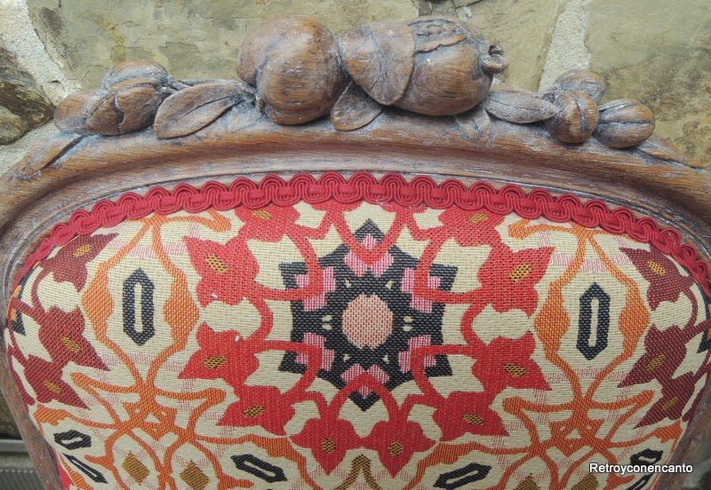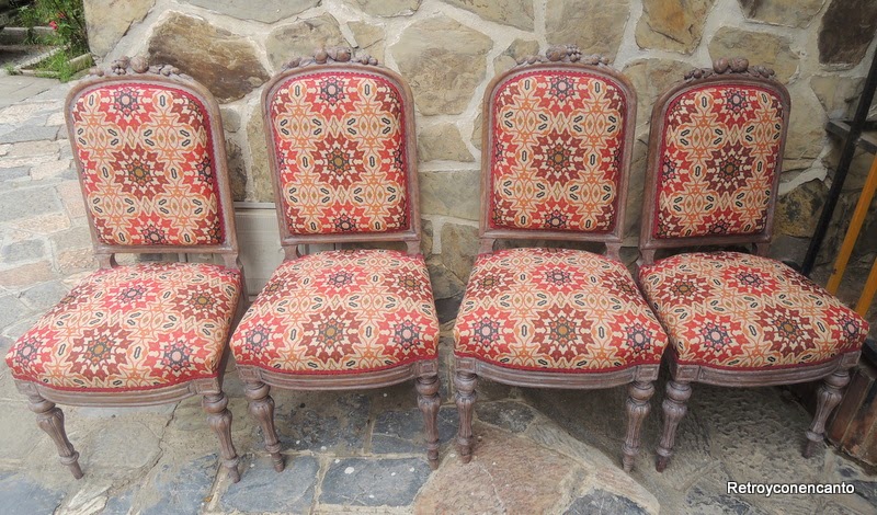 Pensamos en tapizarlas nosotras, pero casar el dibujo era obra de profesionales, así que finalmente tiramos de Pepe, nuestro tapicero de confianza, y este es el resultado.